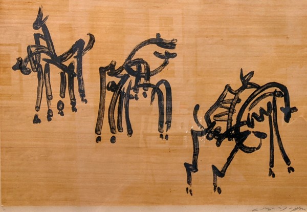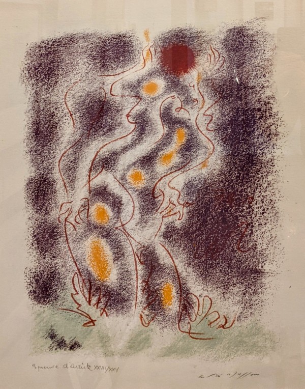 The classically trained French painter, printmaker and designer Andre Masson was one of the leading figures within the Surrealism movement, which dominated modern art in Europe during the interwar years. He was a pioneer of Automatism in art, and exploited chance and accident as part of his creative technique. Although active in the movement, he remained his own man, borrowing motifs and ideas from Cubism and other trends within the Ecole de Paris. Indeed, after joining the Surrealist group in 1922-3, he then left it in 1929 to focus on the human condition. Later, as a refugee from Occupied France, he made a notable contribution to Abstract Expressionist painting in America. A talented draftsman, Masson’s work is characterized by the use of sinuous lines in the style of biomorphic abstraction. As an individual, he was emotionally scarred by his experiences during the First World War, when he was seriously wounded, and he remained a pessimistic person with a restless curiosity in the destiny of Man and the nature of the Universe. He devoted much of his painting and printmaking to the exploration of these concerns, focusing on themes of violence and pain, as well as eroticism, self-sacrifice and the precarious nature of human life.