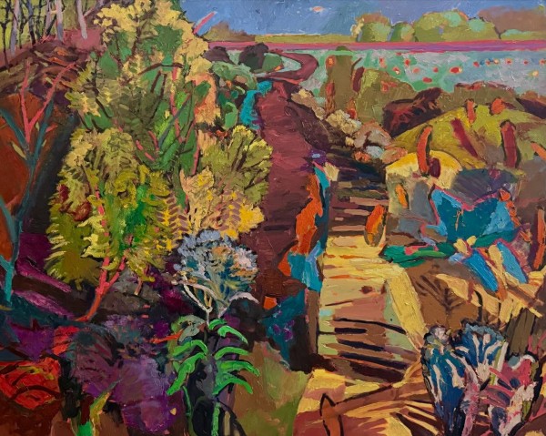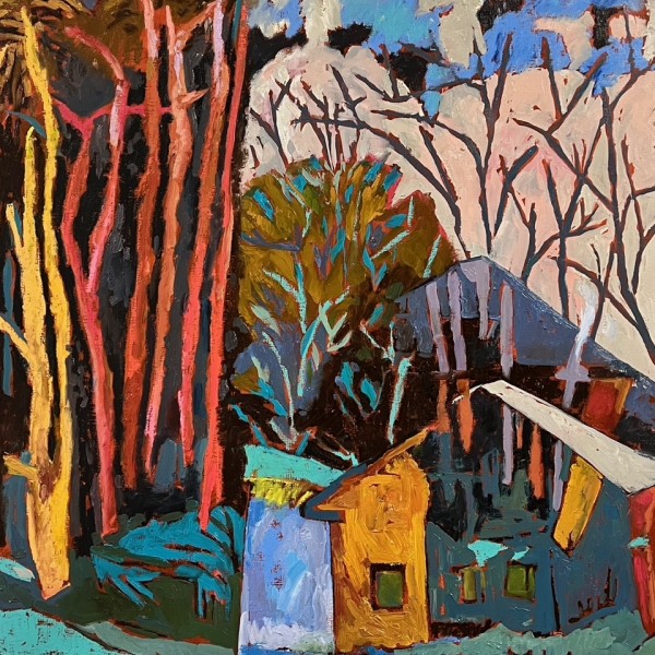 “I am a perceptual artist; I am a narrative artist. My muses are the wonder of ordinary circumstances, dreams and memories and all the variations between realism and abstraction. Artistic references are drawn from growing up in a family of story-tellers, living a life spent close to nature and sharing my days and interests with my partner, visual artist, John Louder. I work in the mediums of painting, drawing, textiles and sculpture.”