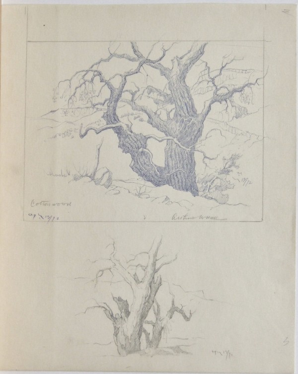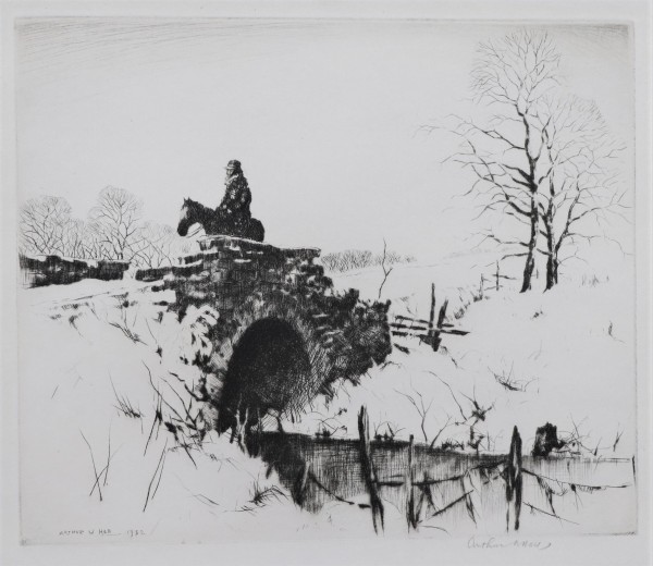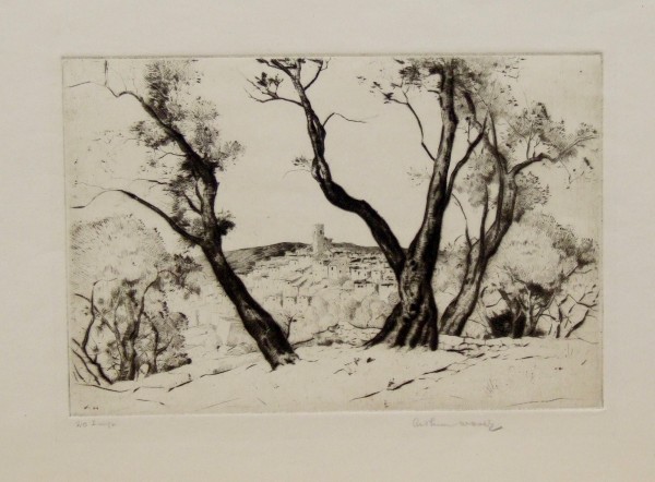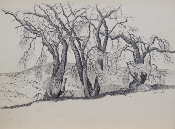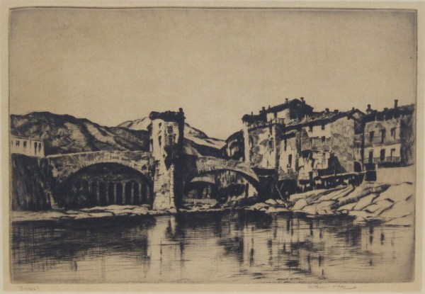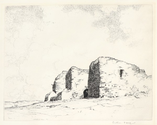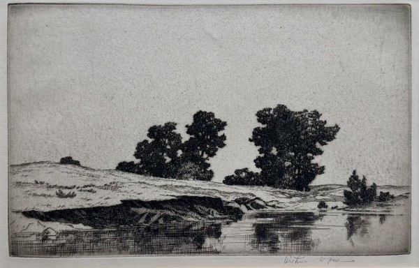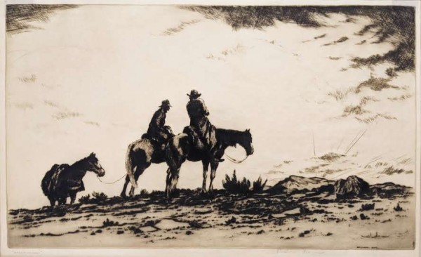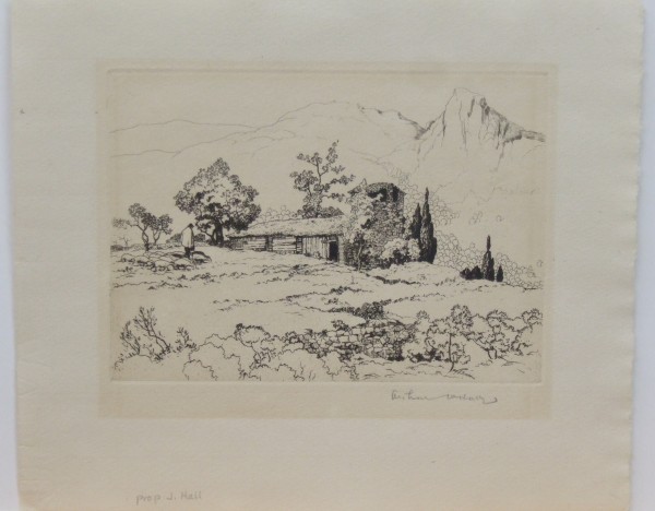 (1889-1981) Hall was born in Texas but received his art training at the Chicago Art Institute where he met his future wife, Norma Bassett. His education was cut short by World War I. After his service he moved to El Dorado, Kansas, working as a court reporter. He and Norma went abroad and ended up living in France for two years. After returning to El Dorado they joined the Prairie Print Makers in 1930 as Charter Members. Hall was a master of etching and dry point but was also extremely gifted in drawing and watercolors. In 1950 Arthur and Norma purchased Rancho del Rio, an adobe estate in New Mexico. During the summer it was a vacation art school, providing them the means to pursue their own art the rest of the year.