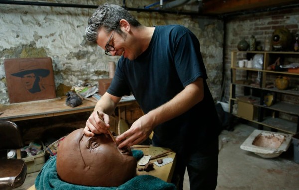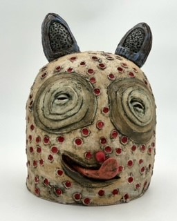 Ben Ahlvers creates hand-built ceramic heads and busts that are glazed with peeling or drippy textures all over their surface. His artwork is full of silly faces, clownlike noses, and cartoonish animals. These figures oftentimes have a mysterious aura about them.