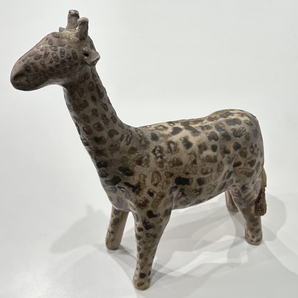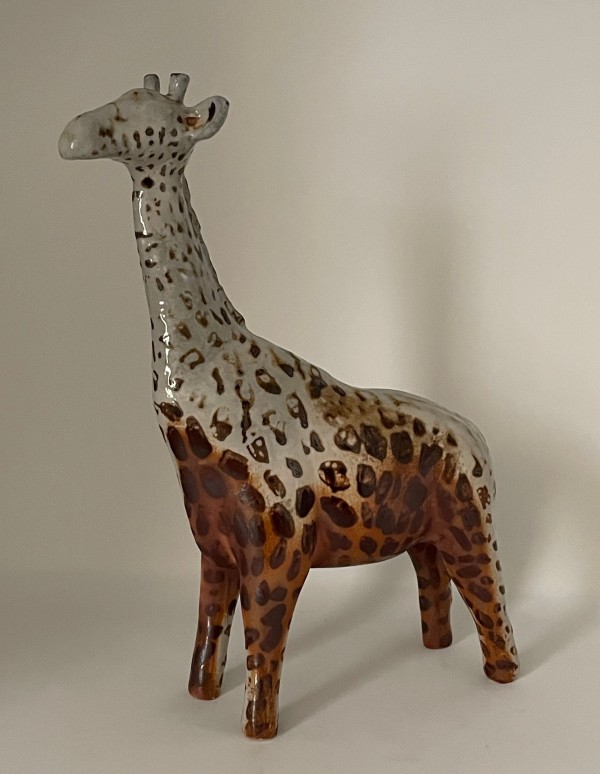 Using either porcelain or stoneware, he wheel throws and hand builds the parts needed for each sculpture. He then meticulously sculpts each finished piece from these component parts.