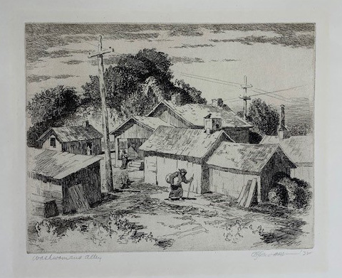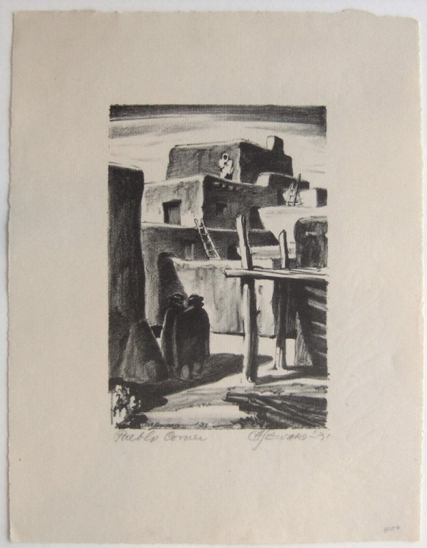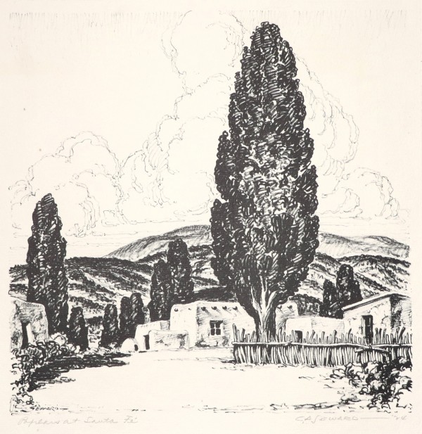 (1884-1939) C.A. Seward is known as an artist, art educator and author of books on printmaking. Spending most of his years in Wichita, Seward was devoted to promoting the arts in Kansas. He gives credit to Birger Sandzen, whom he took classes with, as being a major influence in his pursuit of Lithography. The primary focus of his prints, were that of landscapes and towns. Seward was a founding member of both the Wichita Art Association, Wichita Art Museum, and the Wichita Artists’ Guild and then by 1932 as the Director and later, President of the Kansas Federation of the Arts. Seward was a member of Wichita Art Association; Wichita Artists Guild; California Printmakers; Prairie Print Makers (Charter Member); Kansas State Federation of Art.
