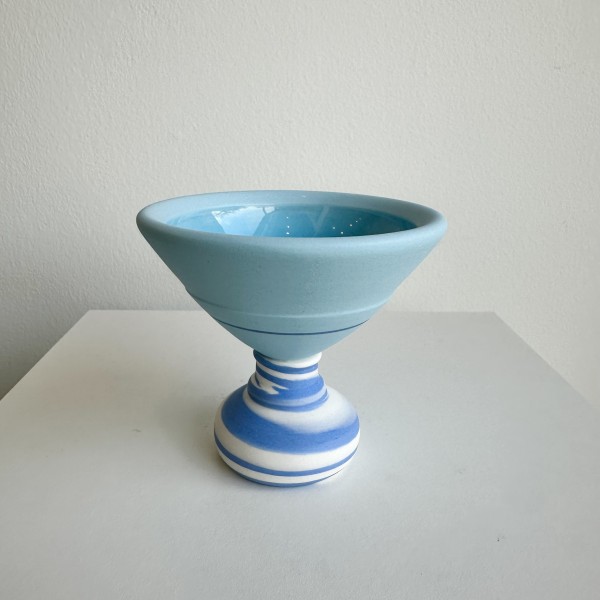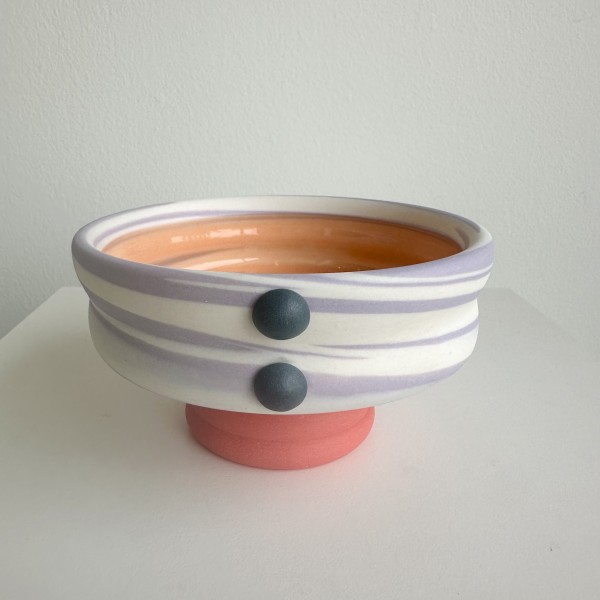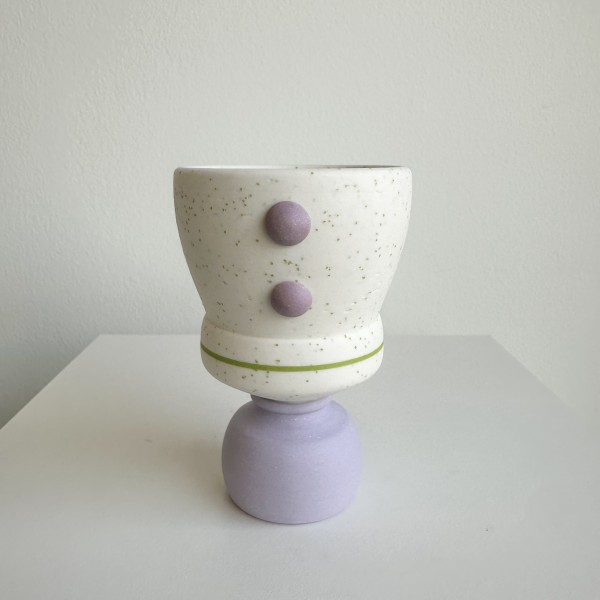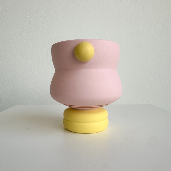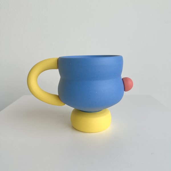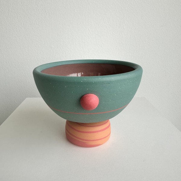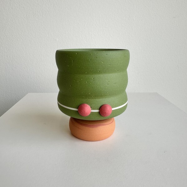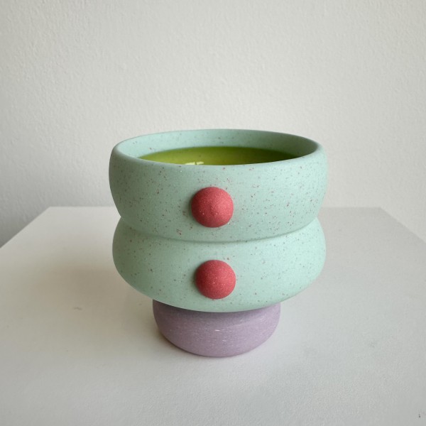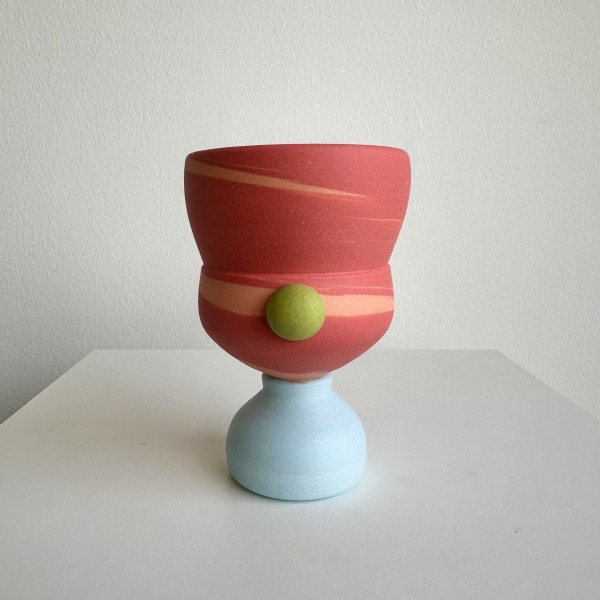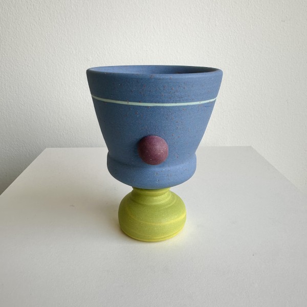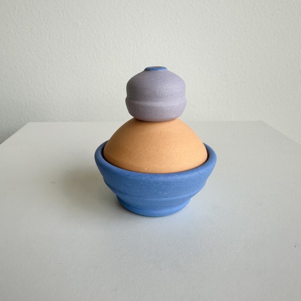 I visualize pots in everyday objects and places, seeing the potential of form and color in everything from vintage wooden toys, a pile of Skittles, or wandering thrift stores. This inspiration has steered me into making pots for the countertop, and pots that allow for a vast range of function. The compact size of my work allows an intimacy between vessel and user, and stems from my eternal love for cups. A love for cups that has led me to make other forms that are meant to be held, experienced, and appreciated from all angles.