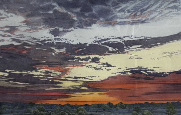 The landscape paintings began as paintings of the dramatic skies typical in the flatlands. Over time, I became more interested in the land itself, and specifically the landscape in and around the Flint Hills of Kansas. In the course of painting there I gradually began to record its seasons as well – a result of my visits being required to fit around the academic year. The textures and linear character of the barren trees and grasses increasingly called forth a more linear brush drawing in my paintings.