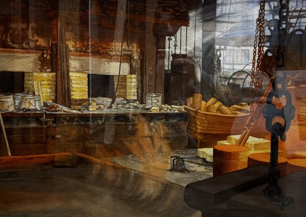 For the Industry series I have explored factories and industrial sites in America. These visits stimulate all my senses and feed my never ending fascination for painting complex patterns, textural surfaces, and a dramatic play of light and color. Once ubiquitous in the American landscape and central to our economy, many “smokestack” factories are now relics of another time. There is in these paintings evidence of a physical and grinding way of work, and perhaps some nostalgia for an American era which has largely slipped away.