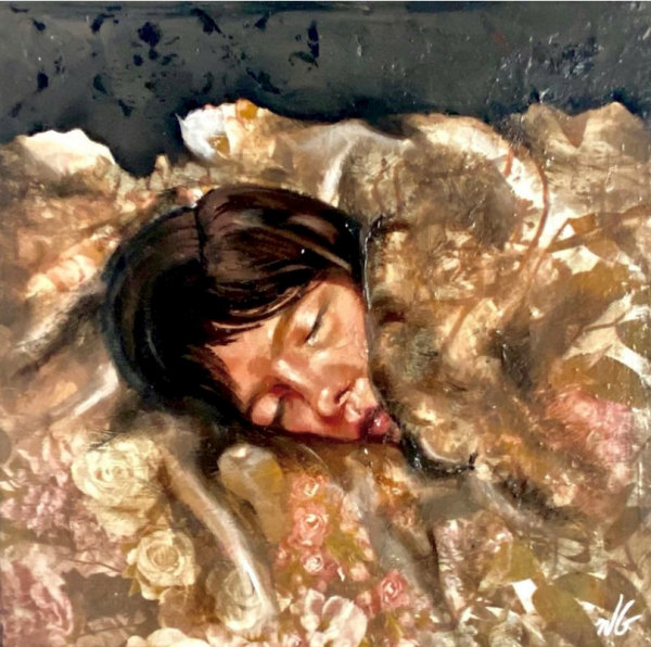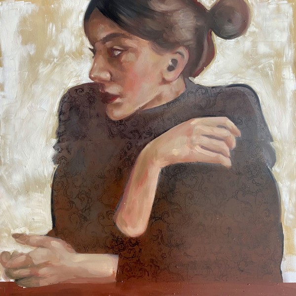 AlGarf is primarily a Figurative Artist, her work explores the boundaries of expression and storytelling by approaching her medium with a combination of realism and painterly flourish. She incorporates modern design with traditional painting techniques to create her pieces. She primarily uses oil paint on wood or panel using a combination of brush and palette knife, paint is applied fragmentally and obscurely to highlight the balance between distraction and clarity of daily life.