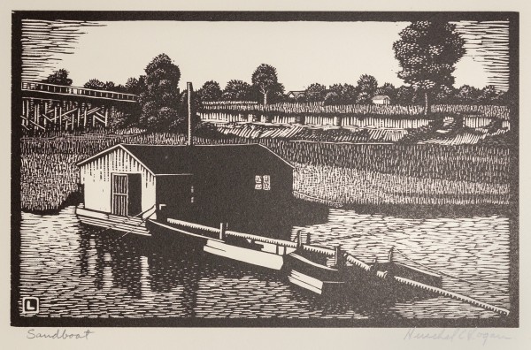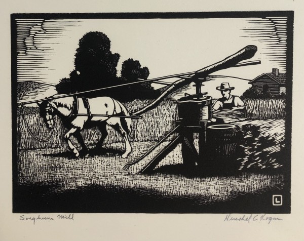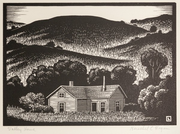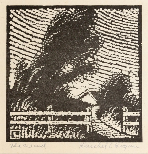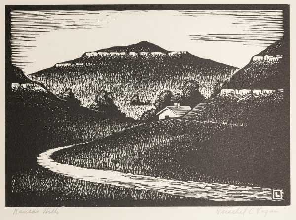 (1901-1987) Born in Missouri and raised in Winfield, Kansas, Herschel Logan grew up with a love for art, which led to a year studying at the Chicago Academy of Art. His job at McCormick Armstrong printing company brought him to Wichita where he was influenced by Robert Aitchison and C. A. Seward. It was through Seward that Herschel became a prolific woodblock printer during the height of the Arts and Crafts Movement. Herschel’s subject matter was that of everyday scenes in rural Kansas, and he was the youngest founding member of the Prairie Print Makers.