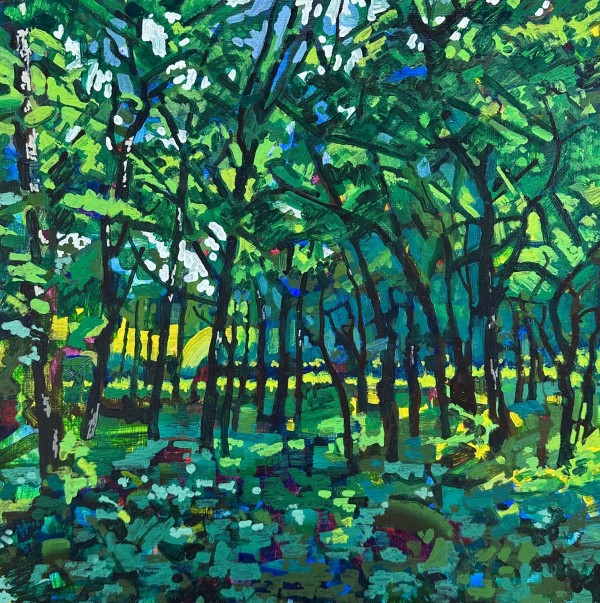 His artwork reflects their influence through a contemporary lens, resulting in vibrant and captivating compositions that unveil the hidden beauty of his surroundings — from the intimate interiors of his home to the enchanting pockets of woods.