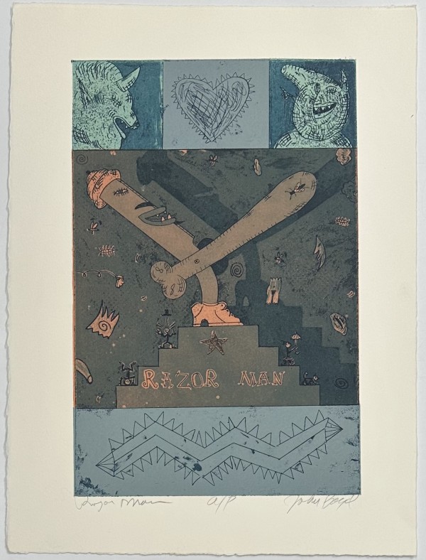 (1939-2012) Born in Arkansas, Boyd moved to California with his family while in High School. He began taking art classes while attending California State University of Long Beach, beginning with photography. At CSULB he also taught printmaking for a year part-time before entering Cranbrook Academy of Art. John’s work held his unique vision of outsider art, often depicting the simple pleasures of life.