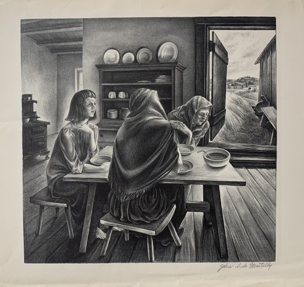 John de Martelly was born in Philadelphia, Pennsylvania in 1903. In Philadelphia and studied at the Pennsylvania Academy of Fine Arts, in Florence, Italy, as well as the Royal College of Art in London. In the 1930s and 1940s, he taught printmaking at the Kansas City Art Institute to the same students who studied painting with Thomas Hart Benton.
