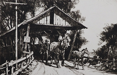 After his release from military duty, he returned to Roseville and married Velma Wilson who encouraged Leslie to work full time on his artwork and he thereafter gave up pottery design. He was a member of the Society of American Graphic Artists, the Prairie Print Makers, the California Society of Etchers, the Ohio Watercolor Society, the Society of Academic Artists, and the Columbus Artists League. He had a solo exhibition of his work mounted at the Capitol Rotunda in Washington, D.C., and his work is in the permanent collections of the Library of Congress, Carnegie Institute, the Metropolitan Museum of Art, the Spencer Museum of Art, and the Smithsonian Museum of American Art.