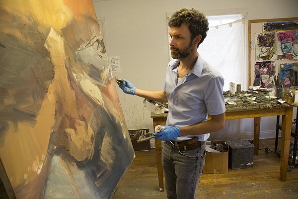 Michael McCaffery creates oil paintings and drawings of his 80-year-old father. His color choices wobble between bright synthetic hues to neutrals that he associates with Kansas and his father. McCaffery continues to explore the transformation between invention and perception.