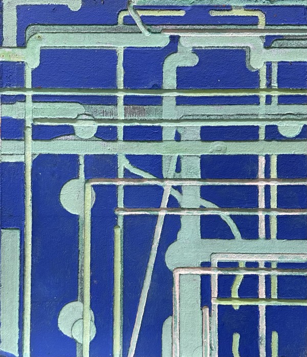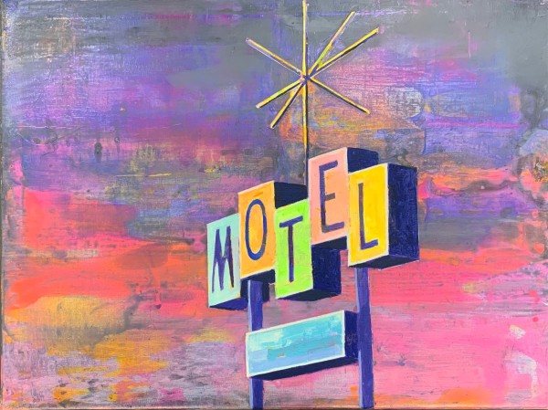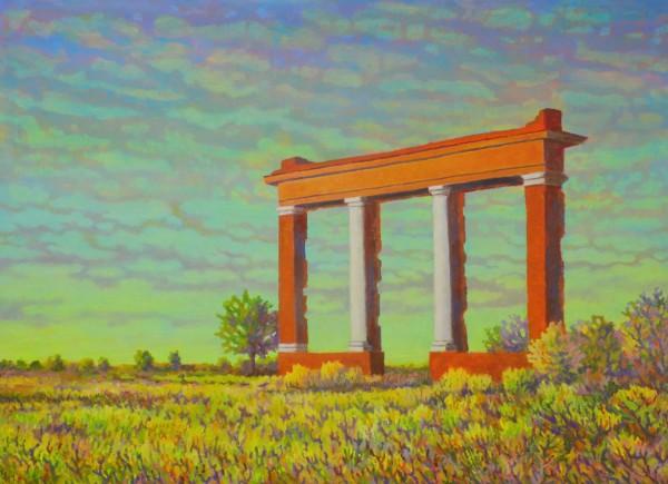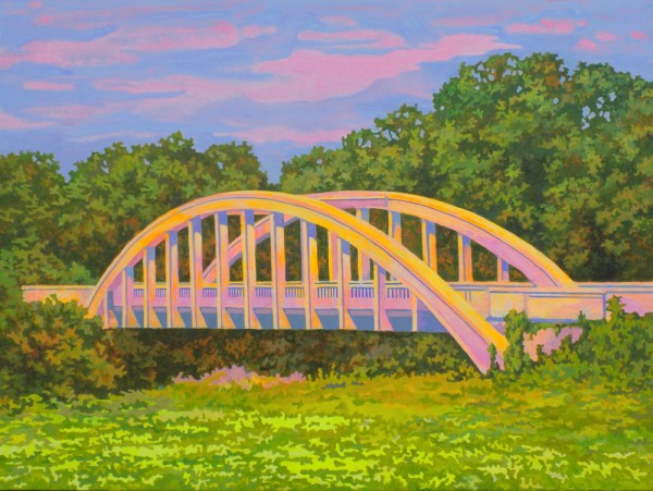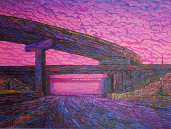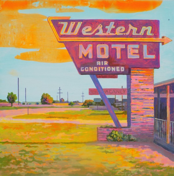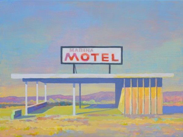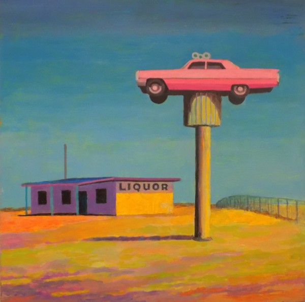 “My work focuses on the altered landscape and cultural emptiness. I take photographs that are the basis for the paintings. These go through a digitization process to reduce the visual information in a scene. I choose dead malls, places left behind, blank billboards and stealth towers for my subjects. The colors in my work are pushed to reference memory, emotional states, climate change, nuclear reality and artificial life. Rather than inventing surrealistic scenes in an illustrative way, I paint scenes from real life that already appear surreal.” – Gadbois