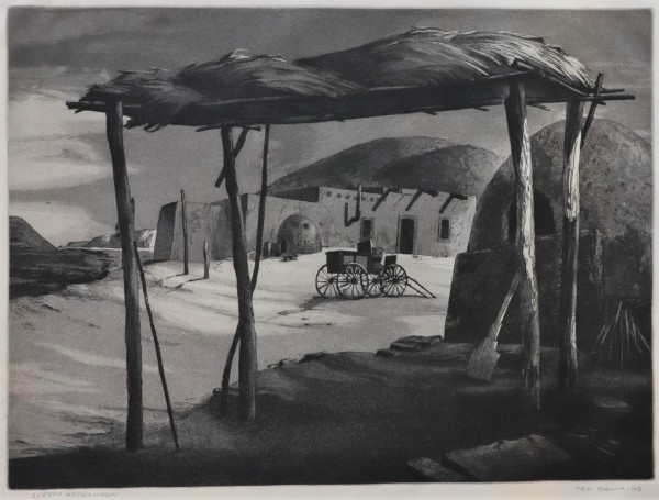 (1910-1969) Born near Rock, Kansas, and raised in Winfield, Ted Hawkins enrolled at the Wichita Art Association in 1931 where he was a student of Bill Dickerson and later became an instructor himself. Under scholarship he studied at the Minneapolis School of Fine Art, graduating in 1935. He began employment with McCormick-Armstrong in 1939. He was an active member of the Prairie Print Makers.
