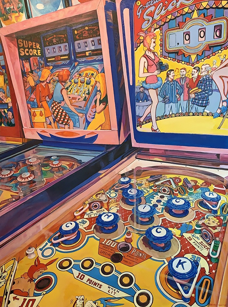 Wilkinson’s series of “Aggregation” paintings depict structured groupings of people, reminding the viewer of numerous rules, and rituals, that govern human interaction in society. The people reflexively fall in line according to the demands of an unseen authoritative element. The doll-sized scale of the figures creates the impression that one could reach in and manipulate the scene. The rigid arrangement suppresses personal expression, yet the unique qualities of the individuals emerge upon close inspection.
