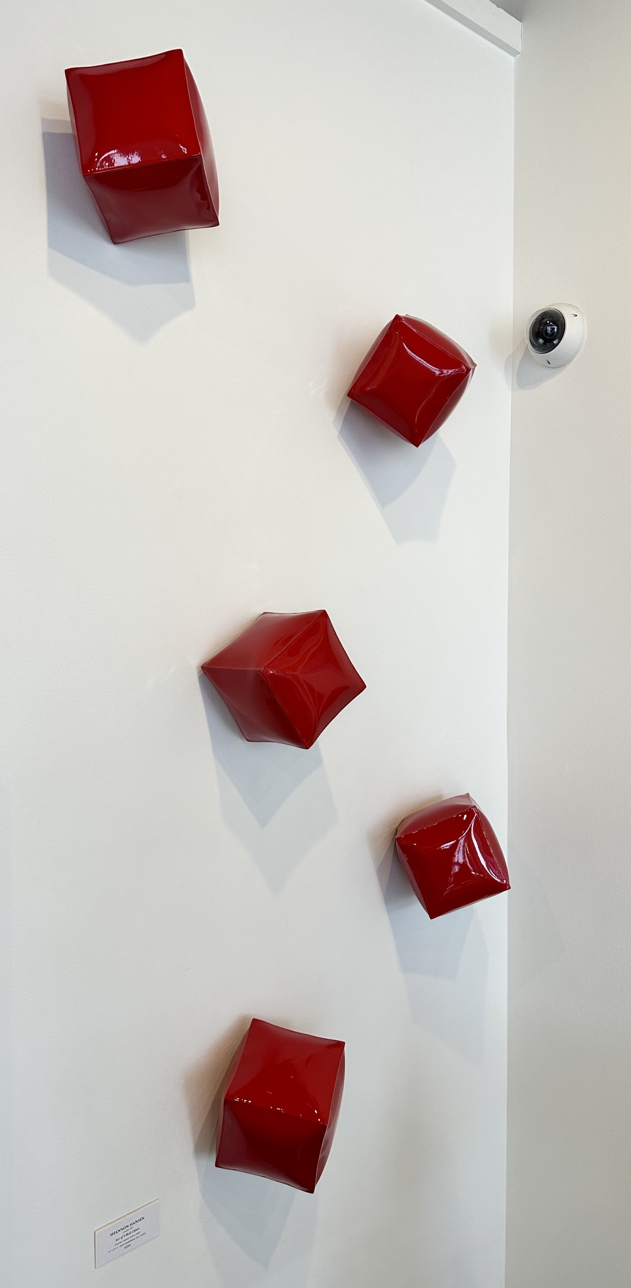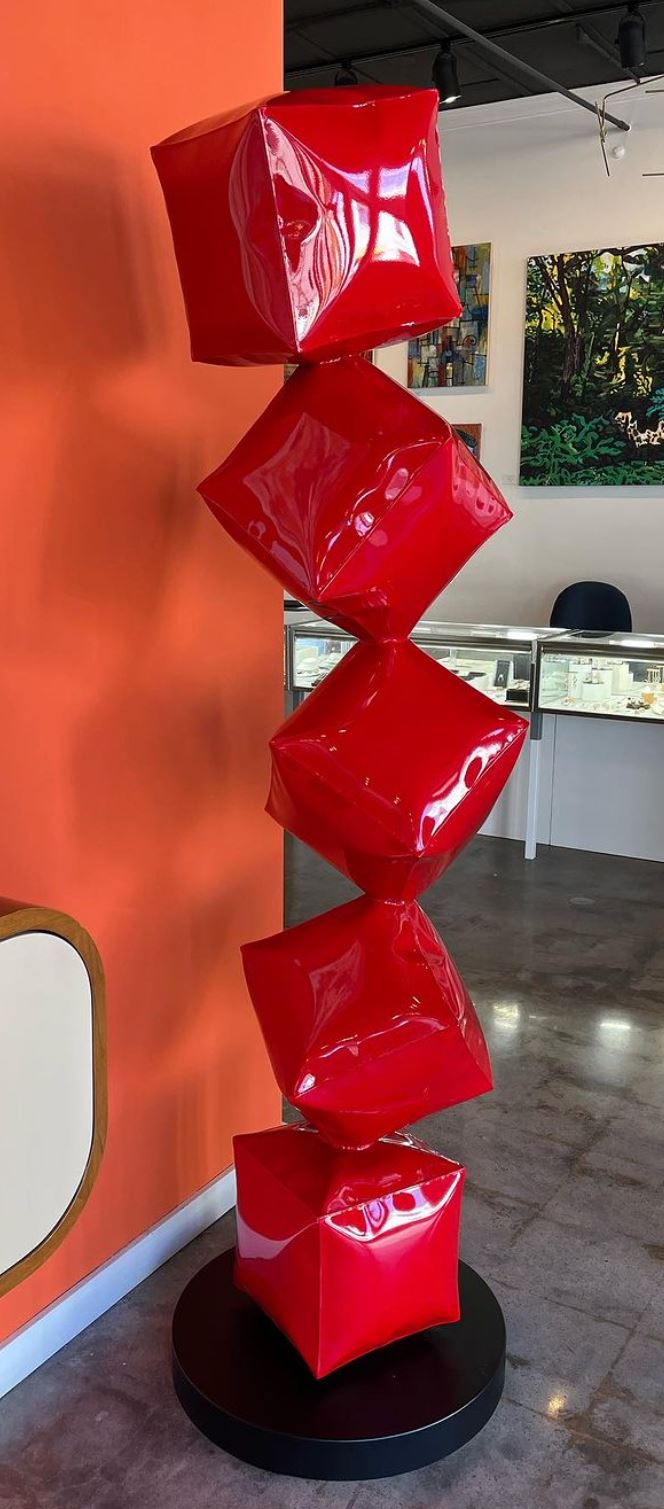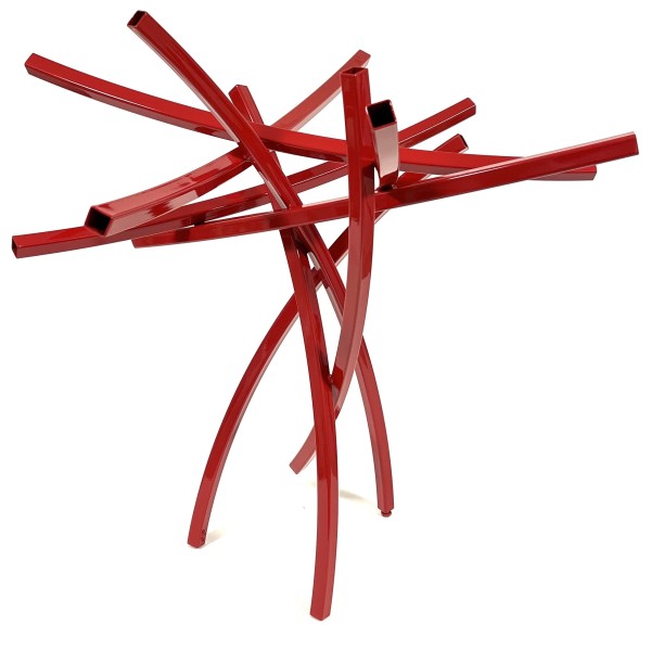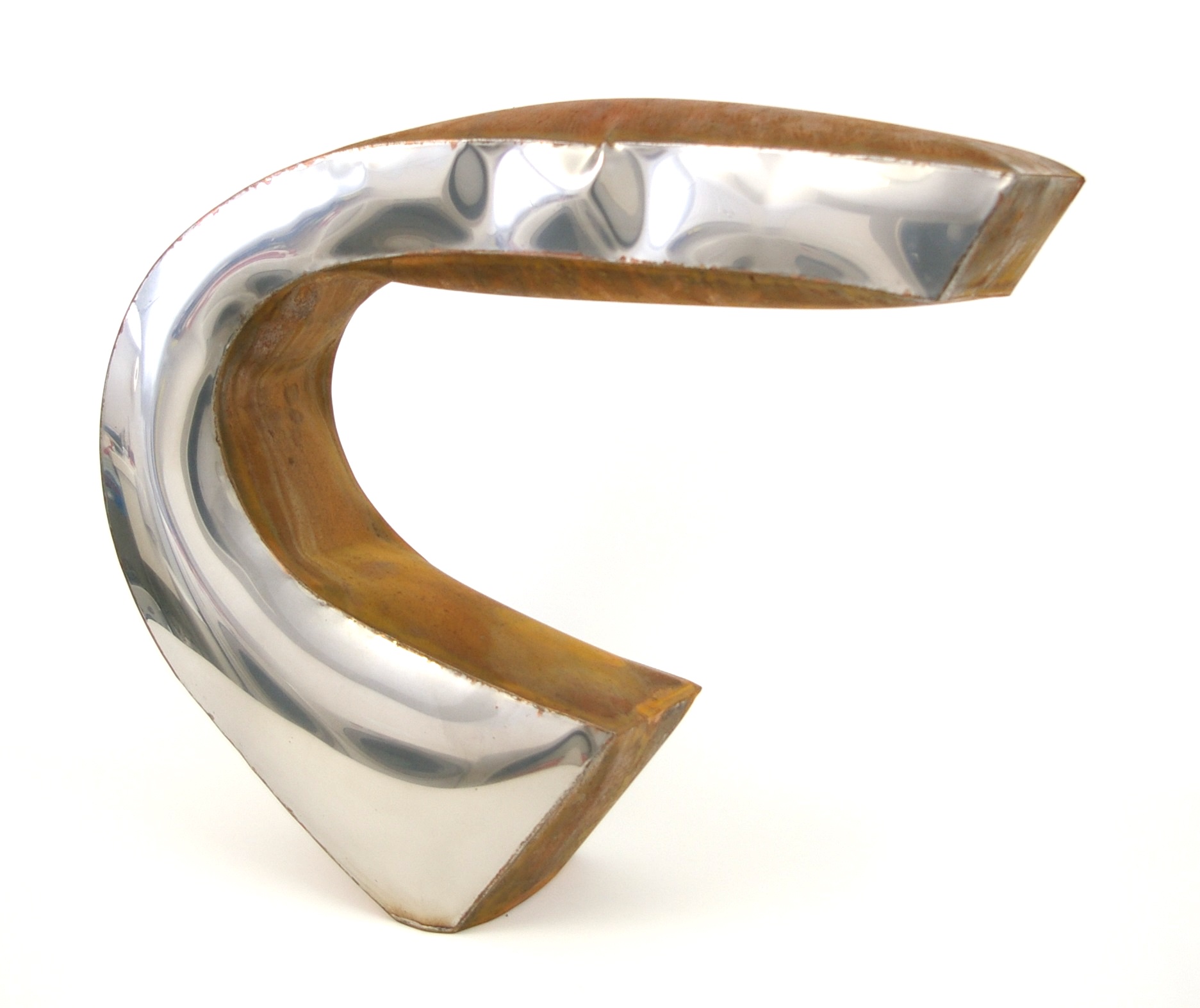 “My sculptural concepts are conceived from mechanical, aerodynamic, industrial architecture and natural forms. Most sculptures start from sketched which are uploaded to CAD modeling software, altered and then fabricated. I work with carbon steel, stainless steel and aluminum. Surface finishes include grinding, sanding, anodizing natural rust patinas and acrylic urethane painting.