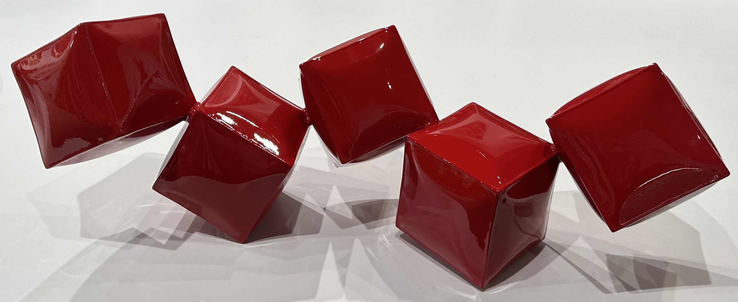 I’m especially fascinated by the geometry of form and how form interacts in a defined space. I spend hours looking at the relationships of positive and negative space and the contrast and conflicts created in that space. I tend to work in series and create many small maquettes to examine spatial relationships in the round. Ultimately a few of the maquettes reveal enough satisfying sculptural possibilities that I then make much larger finished sculptures. By the time I begin executing large forms, I also begin the process of making decisions about surface, texture, patina and color.