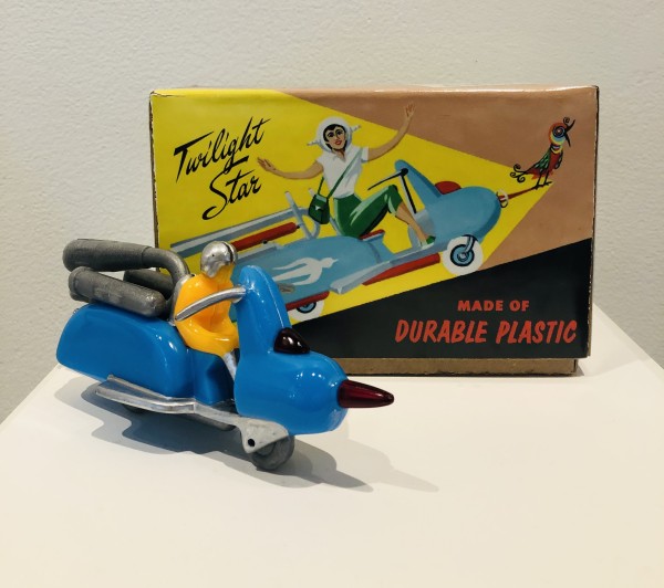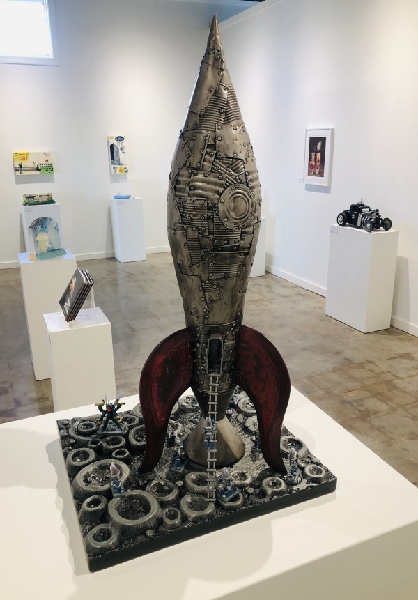 This exhibition highlights the parallels of exploration between five different artists. The artwork on display primarily focuses on nostalgic experiences, space adventure, vintage-inspired toys and the way society intertwines these concepts today.