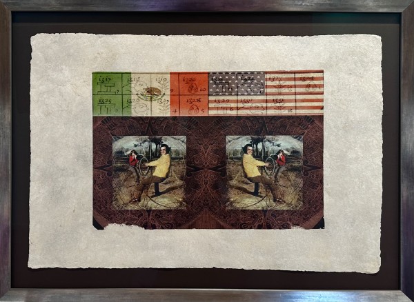 “My work is generally about the relationship between painting to photography. The images in this exhibit are explorations of organic forms and other miscellany played against the wooden grid of a large vintage paper cutter. They provide interesting visual textures. Each piece works to expand photographic language through the combined influence of abstract composition played against real photography. I have titled the pieces with familiar song titles so that the viewer, if they are familiar with the music, will hear the song in their head which will facilitate a connection between my mind and theirs. I have always been involved with the surface of my paper, often showing swathes of gelatin silver paper torn at either end. I want the viewer to experience my paper in the way I do. Using encaustic to finish these images lets me work that surface further and enhance metaphorical possibilities.”