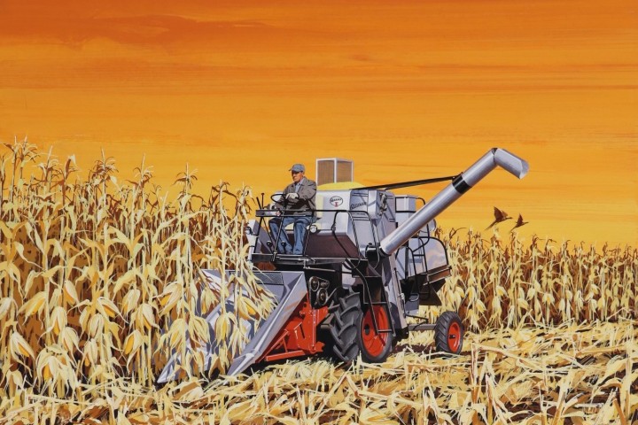Allis Chalmers Advertisement Art, “Gleaner A II – Wheatfield”, gouache (SOLD) A Gleaner A II harvesting a crop of wheat.