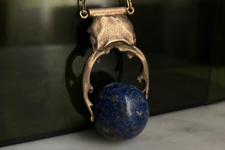 ARCHIVAL by Channing Taylor, “Bronze Beetle / Lapis Necklace”, mixed media (SOLD)