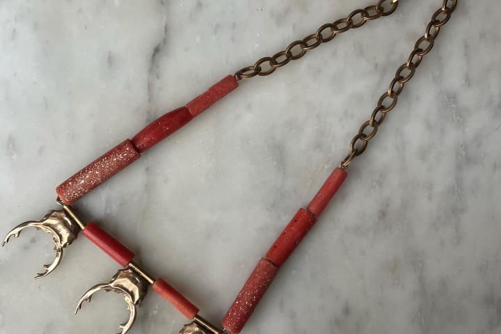 ARCHIVAL by Channing Taylor, “Bronze Beetles / Coral Necklace”, mixed media
