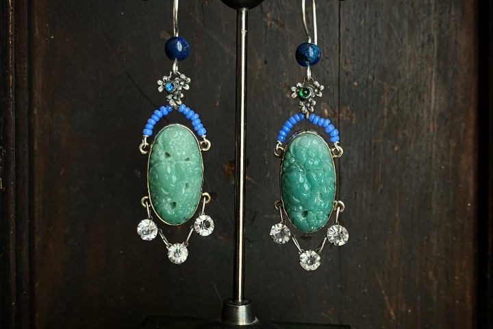 ARCHIVAL by Channing Taylor, “Teal/Blue Crystal Earrings”, mixed media (SOLD)