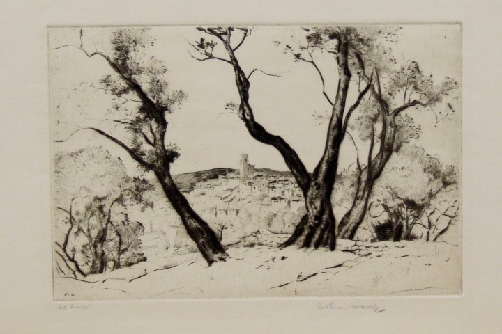 Arthur W. Hall, “St. Paul du Var France”, Dry Point and Etching Excellent condition, full margins, titled lower left edge, 20 Imp. Unframed.