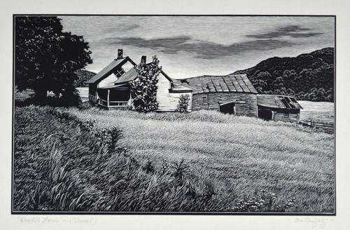 Asa Cheffetz, “Deserted Farm”, wood engraving (SOLD) Wood engraving of an old, abandoned farmhouse. Signed and framed.