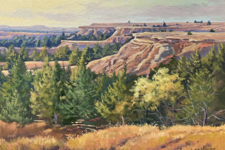 Cally Krallman, “Gyp Hills Early Morning Light”, acrylic on canvas
