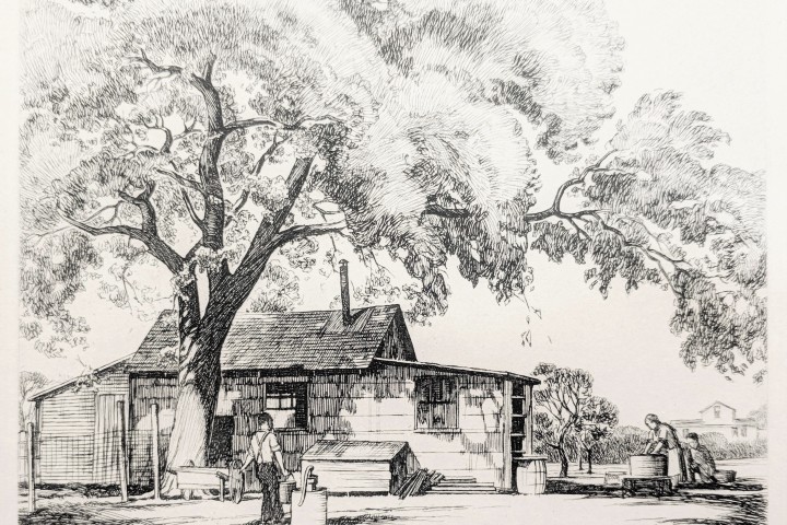 Charles M. Capps, “Be it Ever So Humble”, etching Framed, double-matted; pencil signed “Be it ever so humble -” “Charles M. Capps”.