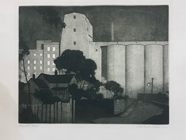 Charles M Chili Capps, “Moonlit Mills”, aquatint (SOLD)
