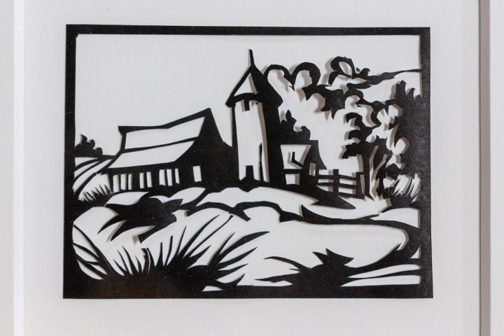 Clark Britton, “3 Buildings”, paper cut (ARCHIVE) Archival matte in black frame (12 x 15); ready-to-hang.