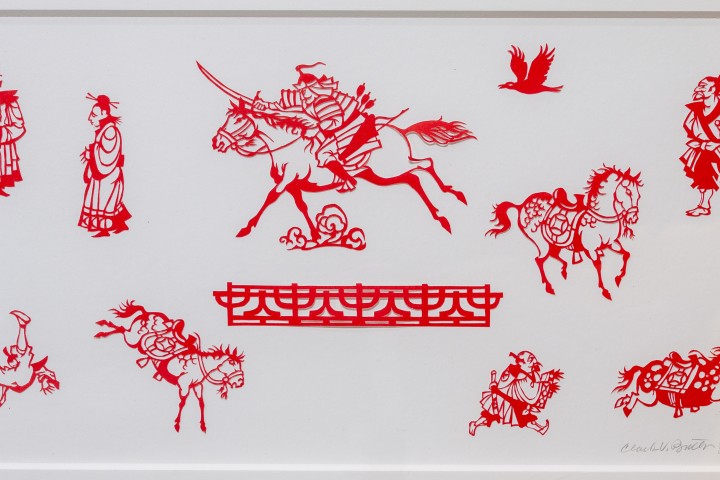Clark Britton, “Tales of Genji (horse)”, paper cut (ARCHIVE) Matted (16 x 20) and backed, ready to frame.