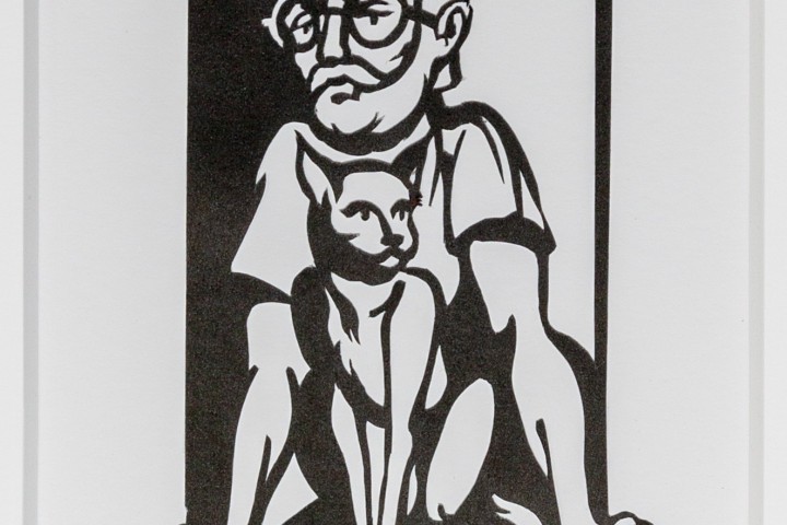 Clark Britton, “Untitled (Self Portrait with Cat on Black Paper)”, paper cut (ARCHIVE)