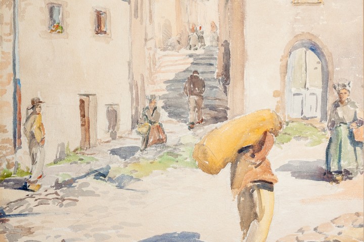 Clayton Staples, “Brittany”, watercolor Ready-to-hang in a 18 1/2 x 19 1/2 gold-leaf frame with archival matte.