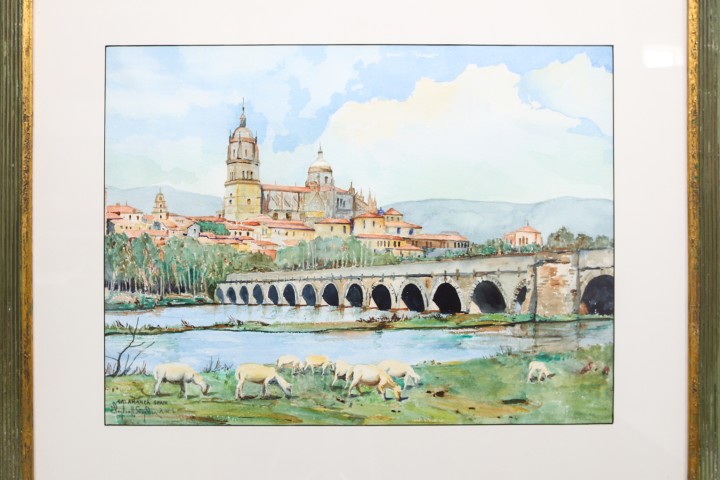 Clayton Staples, “Salamanca, Spain”, watercolor on paper Featured in the original frame (27 x 33); ready-to-hang.