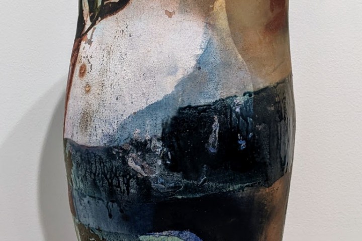 Dale Hartley, “Blue, Green, Orange, Tan,” Ceramic (SOLD)