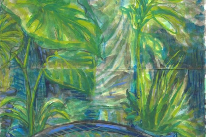 Denita Benyshek, “Morning Coffee in the Garden 3, with Piet Oudolf books and Kaun Yin”, Watercolor