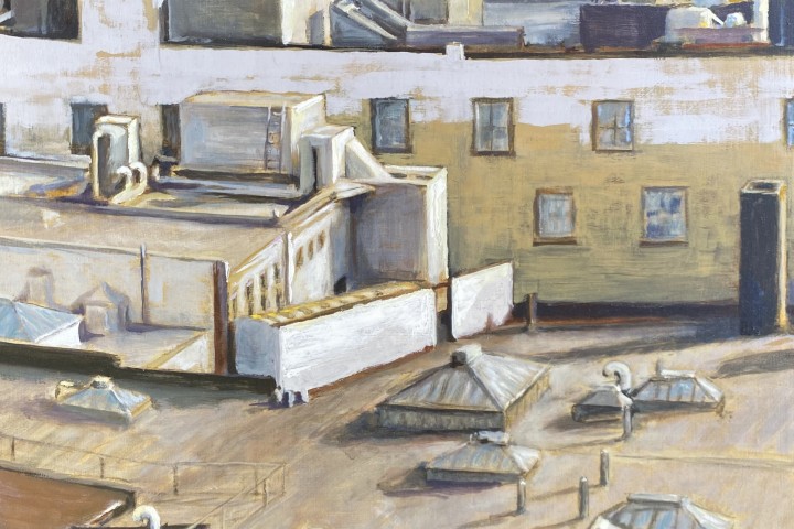 Doug Martin, “Skylights, Tanks, and Motorsheds,” Oil on panel