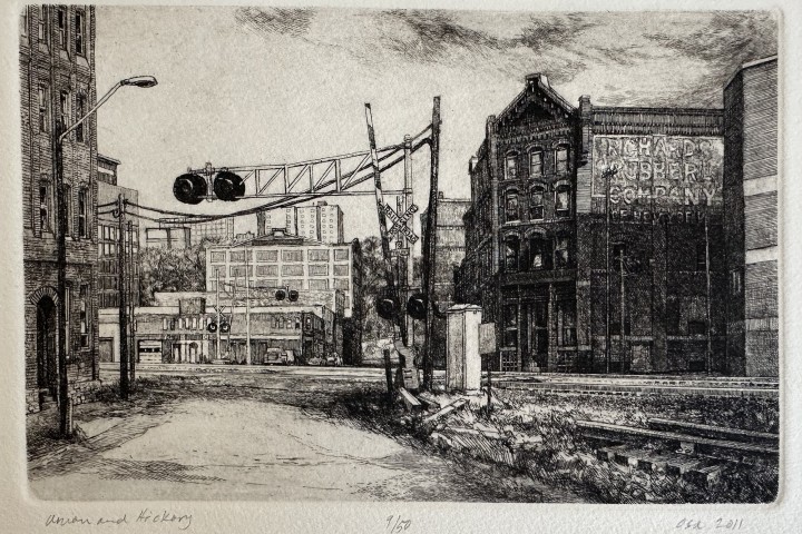 Doug Osa, “Union and Hickory (Ed. 9/50)” intaglio