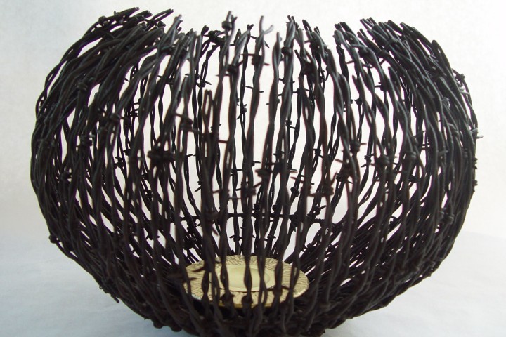 Elliott Pujol, “Barbed Wire Vessel”, Metal/mixed media (ARCHIVE)