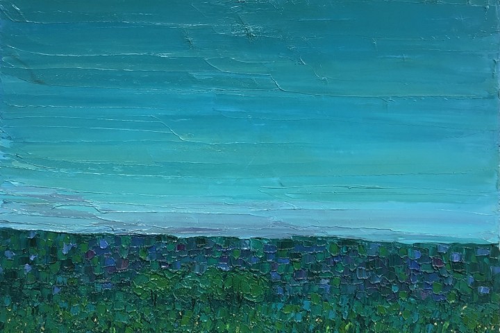 Elizabeth Rowley, “Purple and Green for Patric (Vaya Con Dios)”, oil on canvas (SOLD)