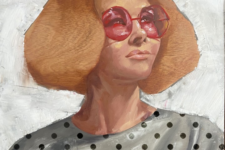 Engy AlGarf, “Red Glasses”, Oil on panel (SOLD)