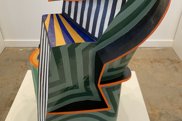 Garet Reynek, “Untitled” (Green, Black, White, Stripes), Stoneware (SOLD) A colorful and bold ceramic piece.