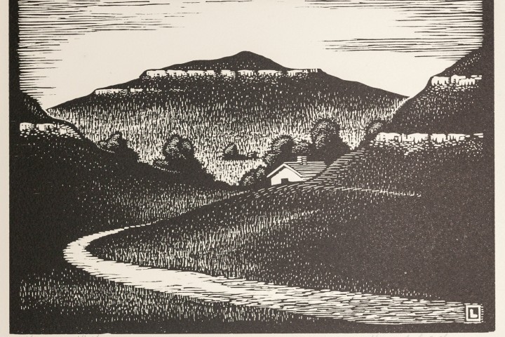 Herschel Logan, “Kansas Hills”, woodblock (SOLD)