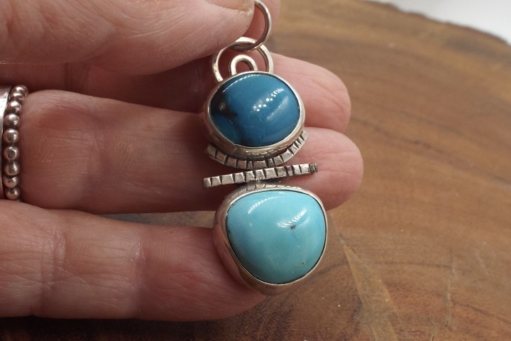 Katherine Fathi, “2 Turquoise Dark and Light Pendant”, jewelry (SOLD)