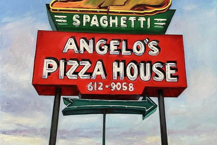 Katrina Swanson, “Angelo’s Pizza House”, Oil on canvas