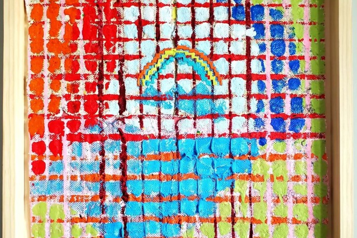 Kevin Kelly, “On the Road Again”, acrylic on handmade paper on canvas (ARCHIVE)