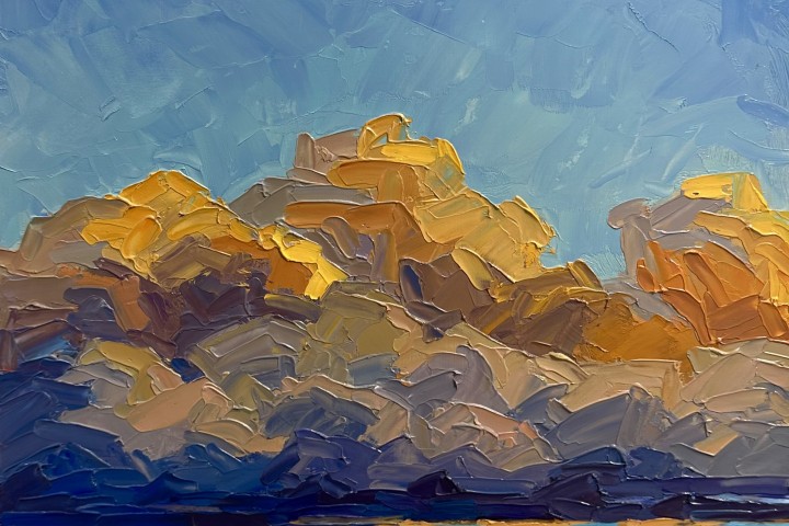 Kristin Goering, “Sunset Thunderheads (Study)”, Oil on canvas (SOLD)
